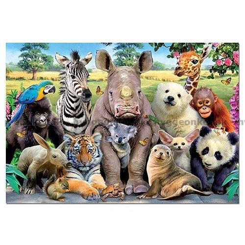 - Djuren i klassen har ställt upp sig till fotografens ära. I mitten det stora noshörningen