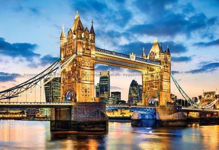 - Den ikoniska Tower Bridge i London badar i det mjuka skymningsljuset. Broens majestätiska torn står tydligt mot den färgstarka himlen