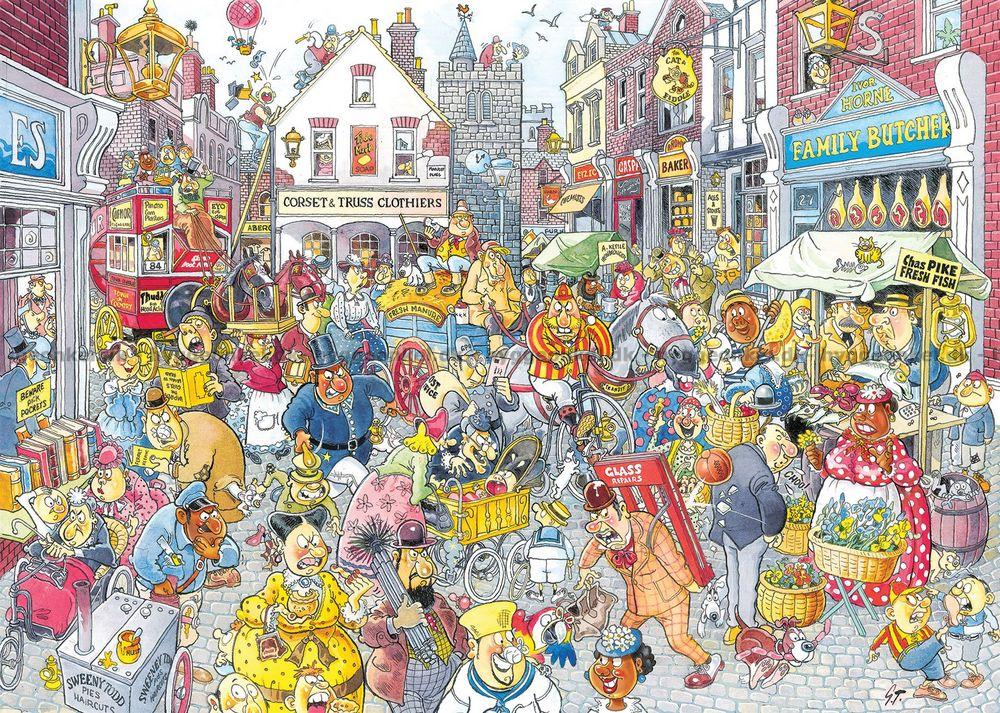 - I detta Wasgij-pussel ska du inte lägga motivet på framsidan av asken, utan du ska lägga ett motiv som visar hur framtiden skulle kunna se ut på denna gågata.