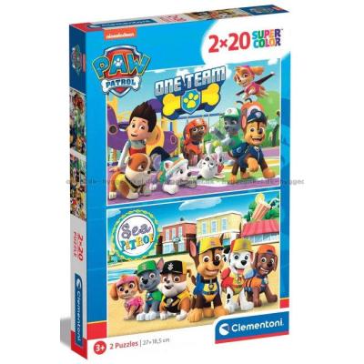 - 2 olika pussel med 20 bitar vardera samlade i en ask. Här är motiven med de coola Paw Patrol
