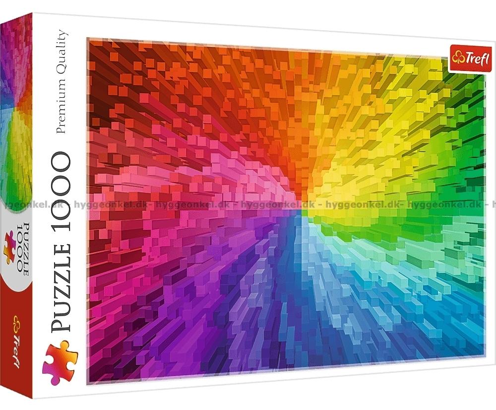 - Bilden visar en dynamisk explosion av färger som sträcker sig från vänster till höger. De varma färgerna som rött, orange och gult dominerar den ena sidan, medan de svalare nyanserna som blått och grönt fyller den andra.