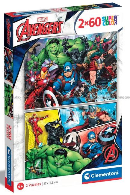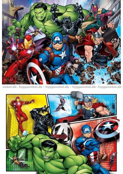 - 2 olika pussel med 60 bitar vardera samlade i en ask. Här är motiven med de coola Avengers-hjältarna