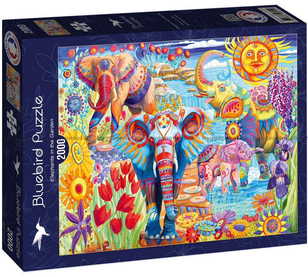 - Ett stort antal färgglada elefanter har det trevligt i trädgården