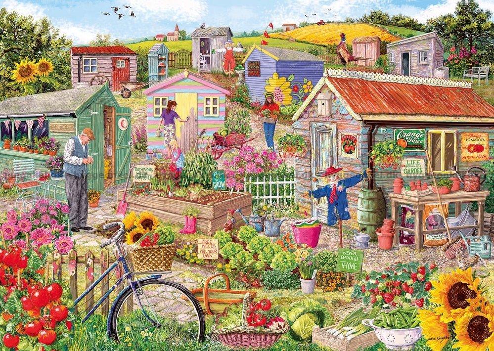 - Det är mysigt i de små koloniträdgårdarna med färgglada skjul och frodiga blomsterbäddar. En cykel står parkerad – korgen är fylld med färska grönsaker och blommor.