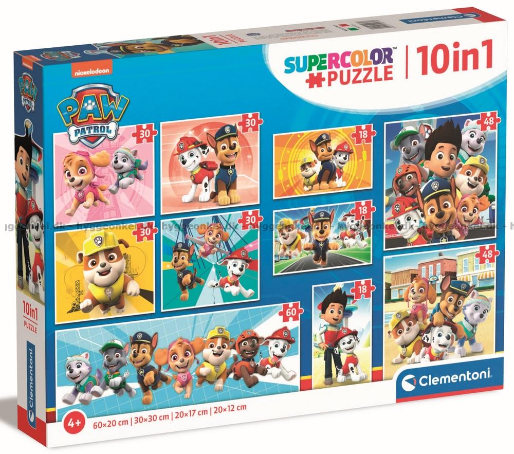 - I denna ask får du hela 10 olika pussel med de härliga Paw Patrol. Pusslen har 18 - 30 - 48 - 60 bitar.