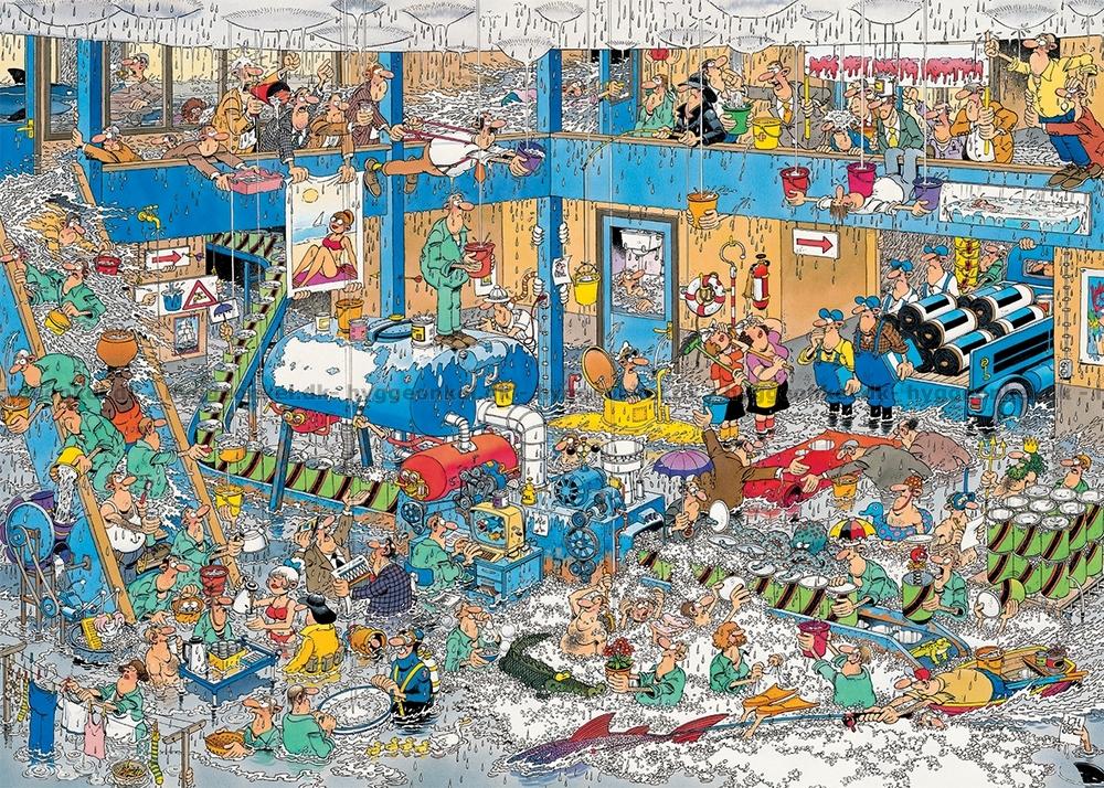 - Pusslet är ritat av Jan van Haasteren. Han har gjort en hel serie av dessa tokiga och detaljrika pussel