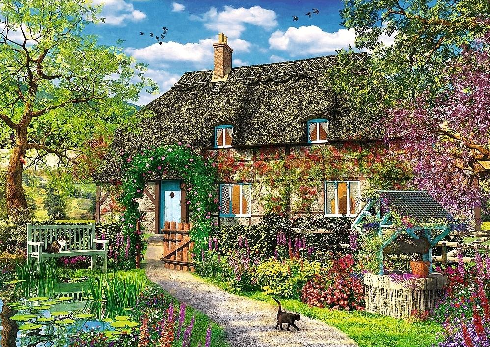 - Det mysiga huset ligger vackert vid den lilla sjön