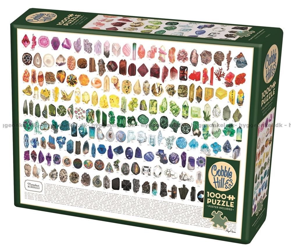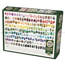 - En imponerande samling av mineraler och kristaller i en mängd olika färger och former. Varje rad presenterar olika nyanser och texturer som tillsammans skapar ett visuellt fyrverkeri.