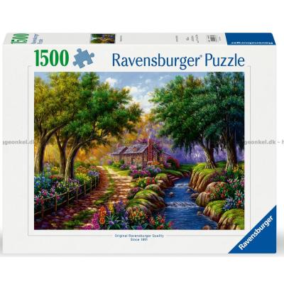 - Ett charmigt hus ligger mitt i ett frodigt landskap. Det är omgivet av färgglada blommor som sträcker sig längs en slingrande stig.