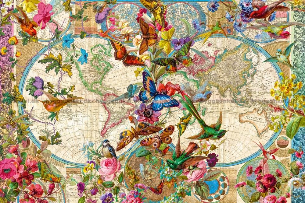 Världskarta: Blommor och fjärilar, 3000 bitar