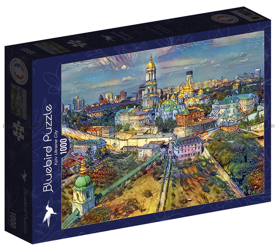 - Motivet visar en konstnärlig tolkning av Kyiv med en färgstark och livlig atmosfär. Stadens silhuett domineras av gyllene kupoler och historiska byggnader som sträcker sig mot himlen.