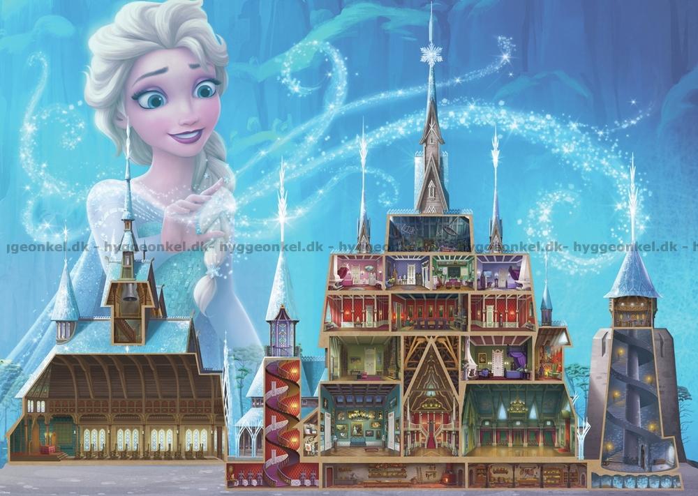 - Mitt i ett magiskt vinterlandskap står ett imponerande slott som sträcker sig mot himlen. Framför slottet syns Elsa, som leende betraktar sitt iskalla rike.