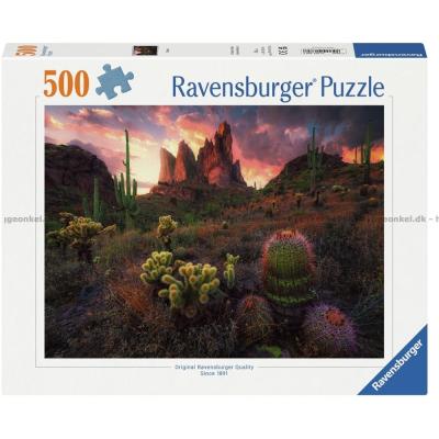 - Detta pussel är ett panoramapussel. Det är bredare än andra pussel med 500 bitar. Däremot är det inte lika högt