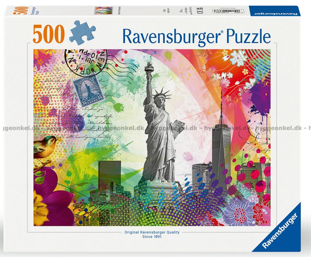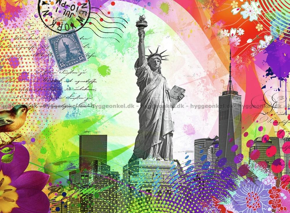 - Färgstark hälsning från New York med stadens kanske mest berömda landmärke Frihetsgudinnan