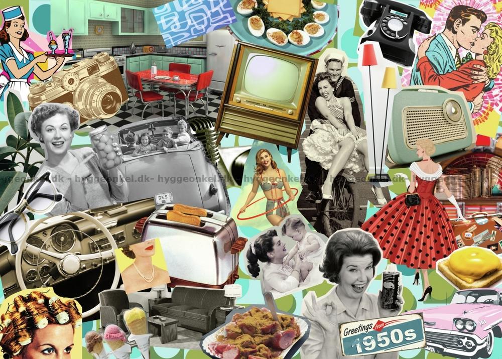 - Denna collage ger en bra inblick i 1950-talets fina mode och storslagna uppfinningar