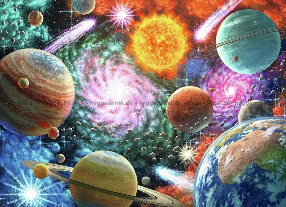 - Planeter, kometer och vackra färger utgör detta motiv av rymden
