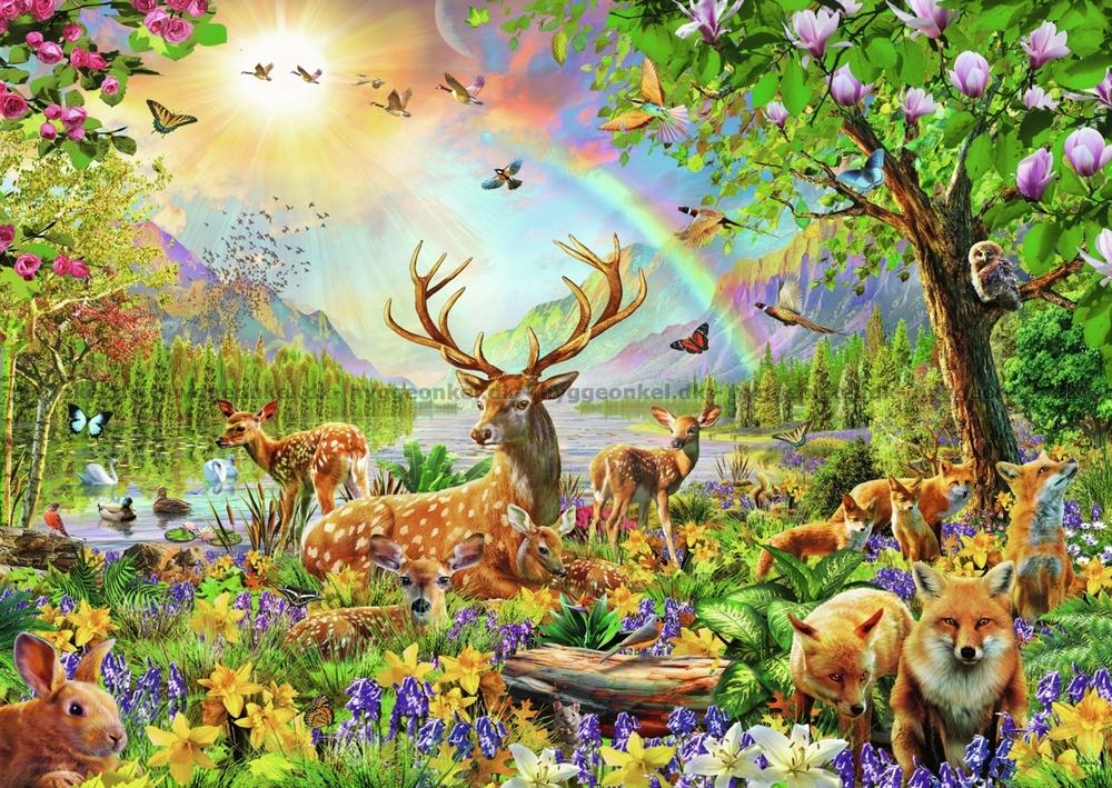 - Djurfamiljerna samlas i skogen och njuter av synen av alla vårtecken