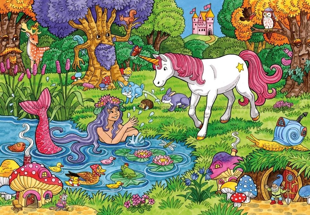 - Drakar, feer och enhörningar myser i den magiska skogen i denna ask med 2 olika motiv