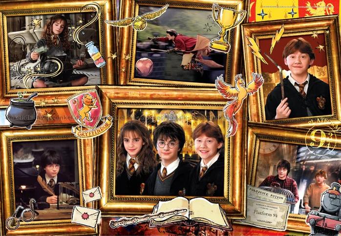 - Collage med bilder av treklövern Harry, Ron och Hermione