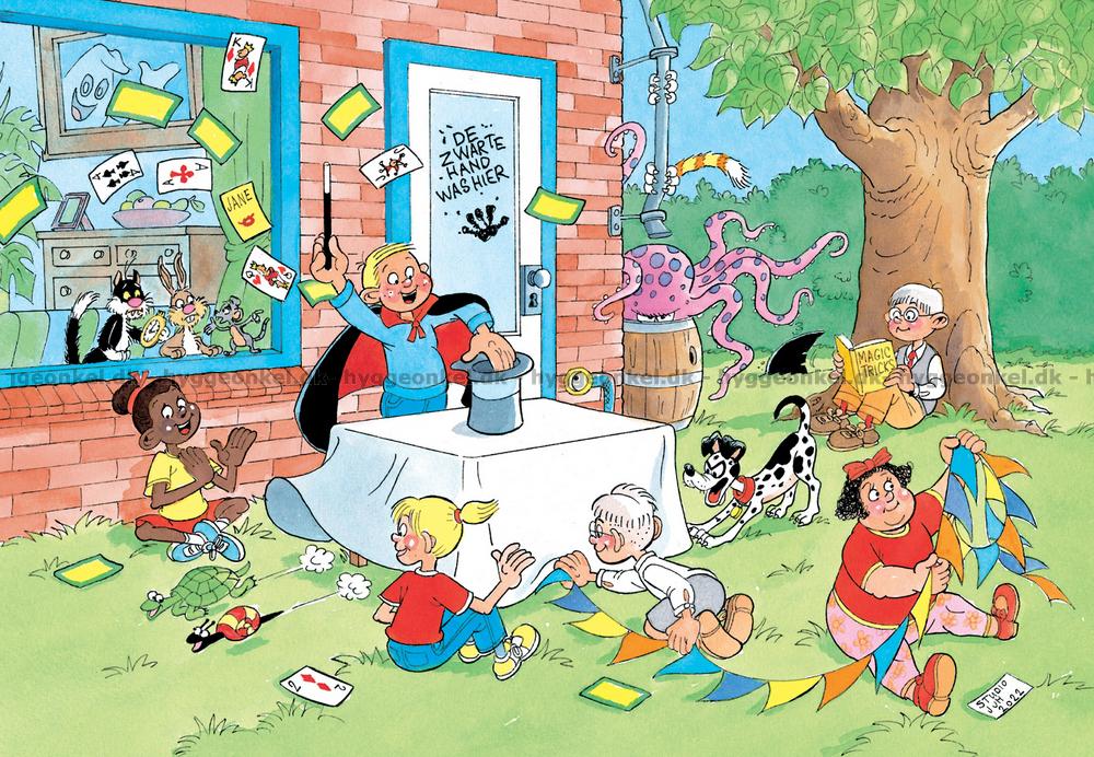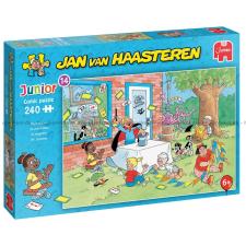- Detta motiv rekommenderas från 6 år. Det är en del av Jan van Haasteren Junior-serien, som är en serie pussel med roliga, finurliga motiv