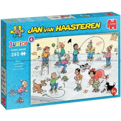 - Motivet rekommenderas från 7 år. Det är ett finurligt, humoristiskt motiv i Jan van Haasteren-serien