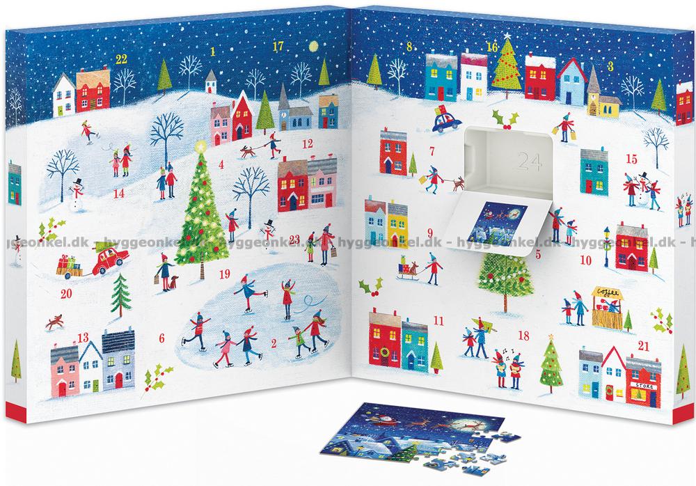 - Bakom varje lucka i denna kalender döljer sig ett litet pussel med mysiga jul- och vintermotiv