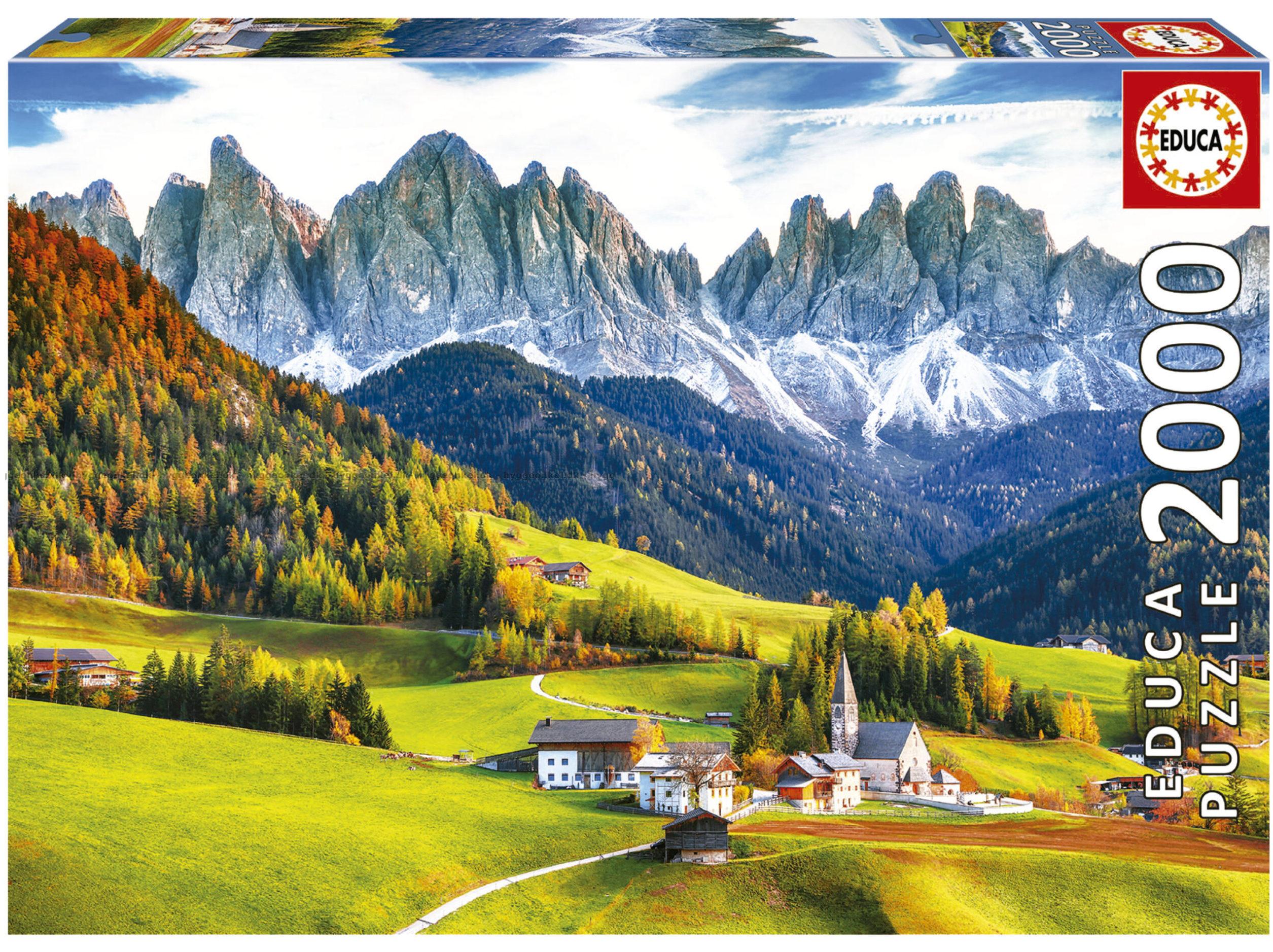 - De råa bergen i bakgrunden är en del av bergskedjan Dolomiterna