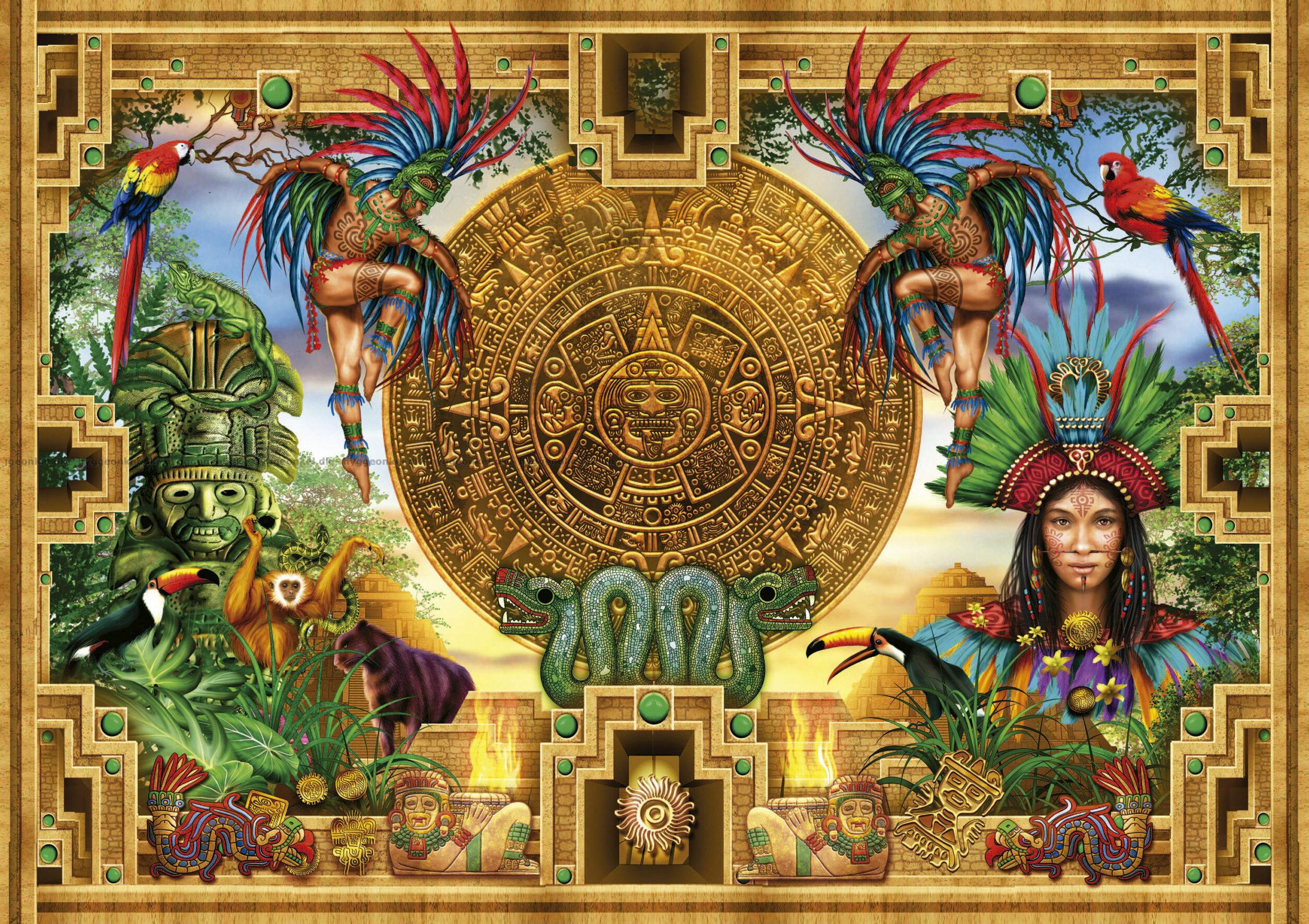 - Både aztekerna och mayakulturen har sitt ursprung i Sydamerika. Ciro Marchetti har ritat motivet