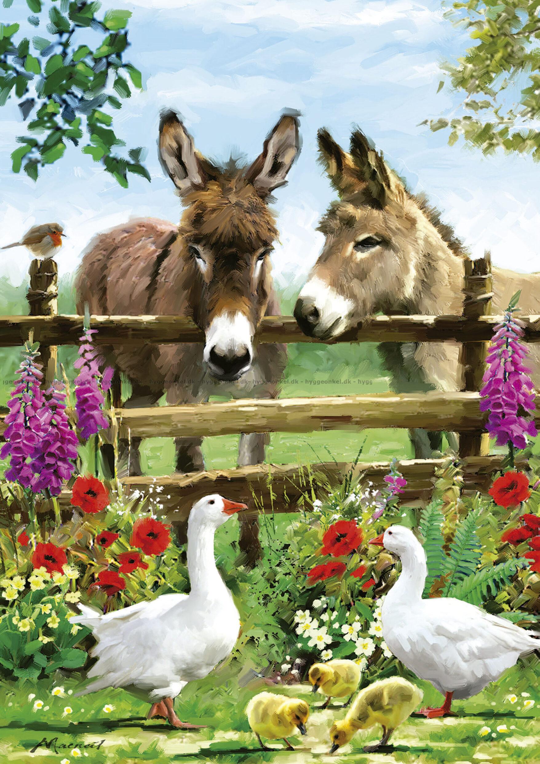 - Åsnorna sticker fram sina huvuden för att hälsa på gäss och gässlingar
