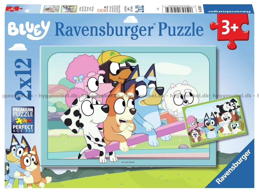 - Du får 2 olika motiv med vardera 12 bitar samlade i en ask. Pusslen rekommenderas från 3 år