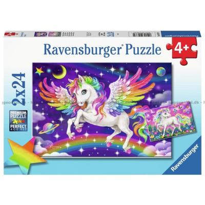 - Pusslen rekommenderas från 4 år och du får 2 olika motiv med vardera 24 bitar i en gemensam ask