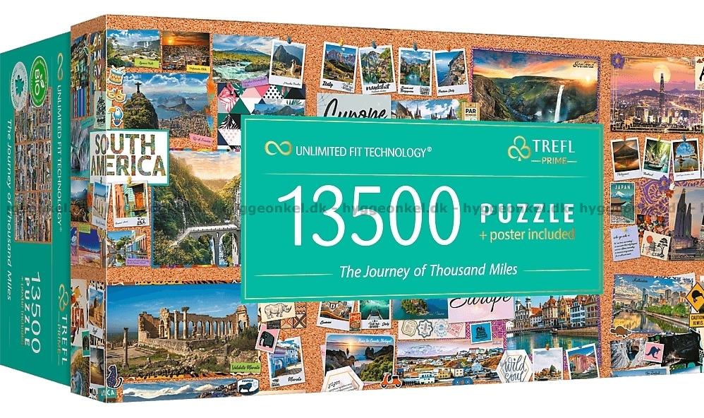 - Pusslet är uppdelat i 9 påsar med 1 500 bitar i varje. Du kan kombinera de 9 pusslen till ett jättestort pussel