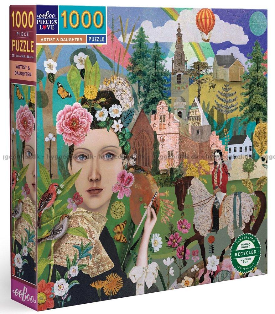 - Den konstnärliga modern står redo med pensel och palett medan dottern sitter till häst i bakgrunden