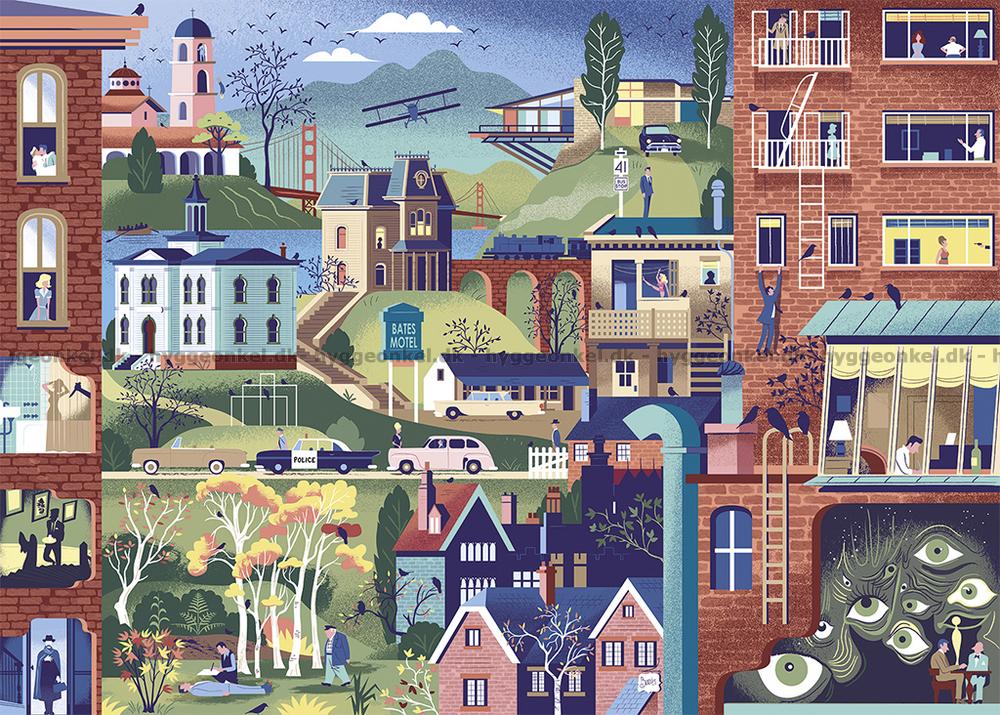 - Alexandre Clerisse har ritat detta motiv med inspiration från Hitchcock-klassiker
