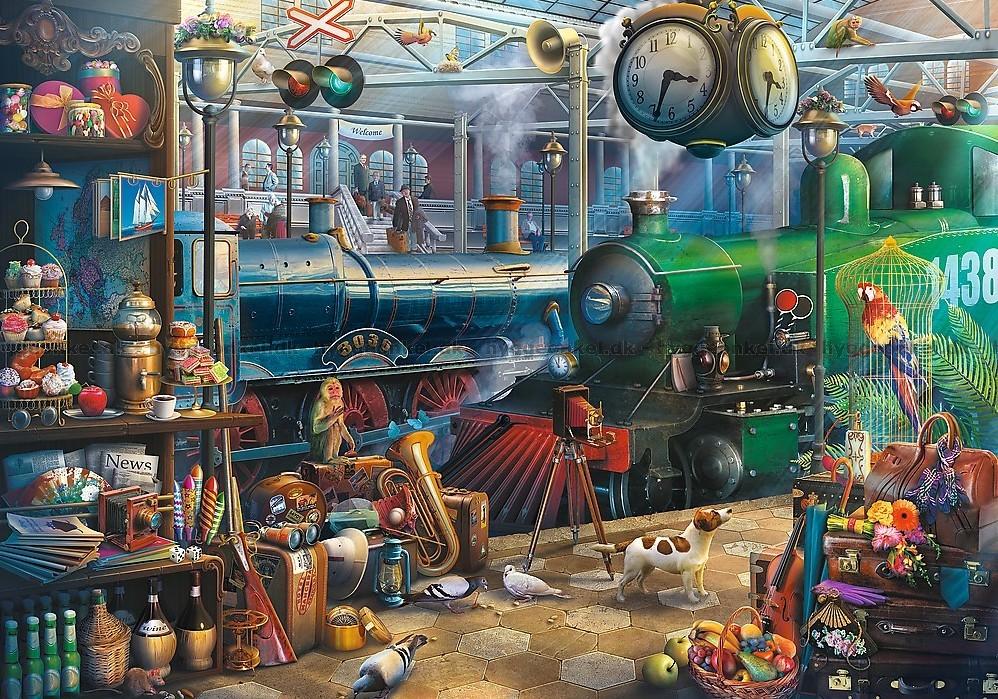 - Plattformen är fylld med en rad spännande tillhörigheter från resenärerna och i taket hänger den gamla stationsklockan