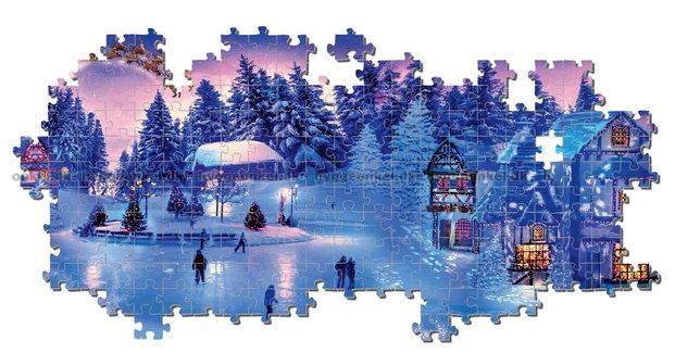 - Detta julpussel är ett panoramapussel. Det är därför inte lika högt som vanliga pussel med 1 000 bitar. Däremot är det bredare