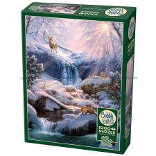 - Djuren letar efter föda i det kalla landskapet. Bäcken har ännu inte frusit helt