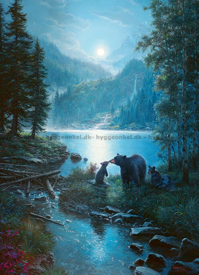 - Björnfamiljen har sökt sig ner till vattnet i månljusets sken