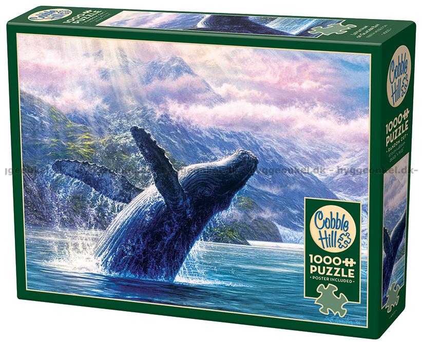 - Det är en imponerande syn när den stora knölvalen lyfter sig upp ur vattnet