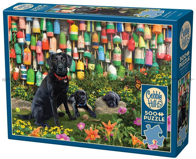 - Hundfamiljen har tagit plats i trädgården framför de många bojarna