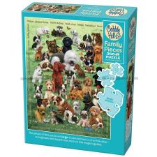 - Det finns många söta hundar samlade på denna gräsmatta. Hundraserna är skrivna runt motivets kant på engelska.