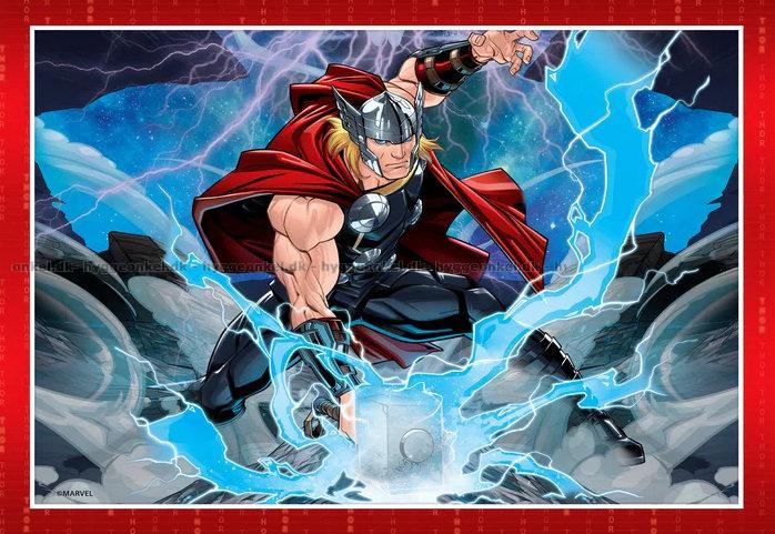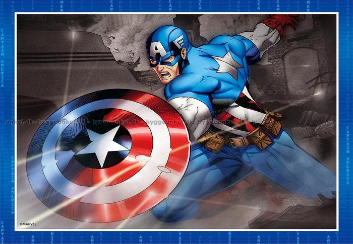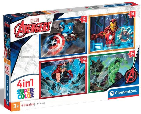 - I denna ask får du 4 olika motiv med de coola Avengers-hjältarna. Pusslen har 12, 16, 20 och 24 bitar.