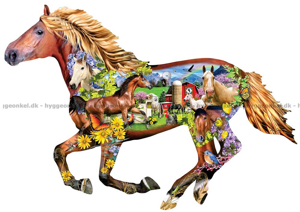 - Lori Schory har ritat detta pussel, som har formen av en häst. Det är alltså inte en rektangel, som ett vanligt motiv