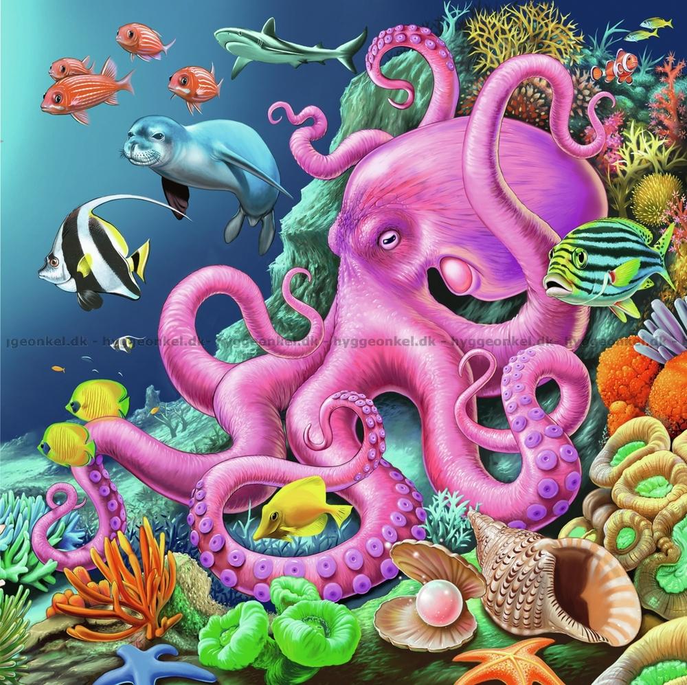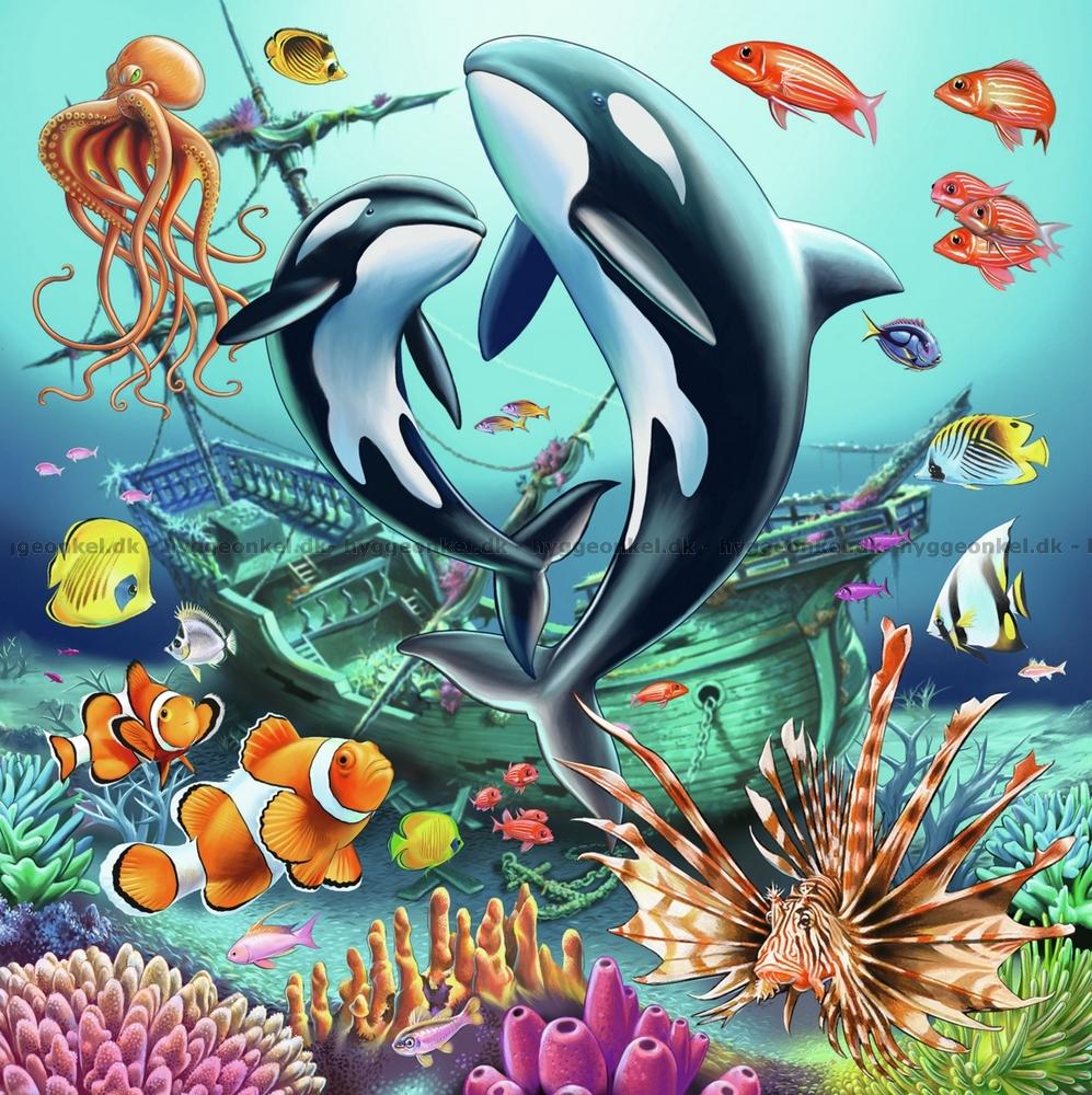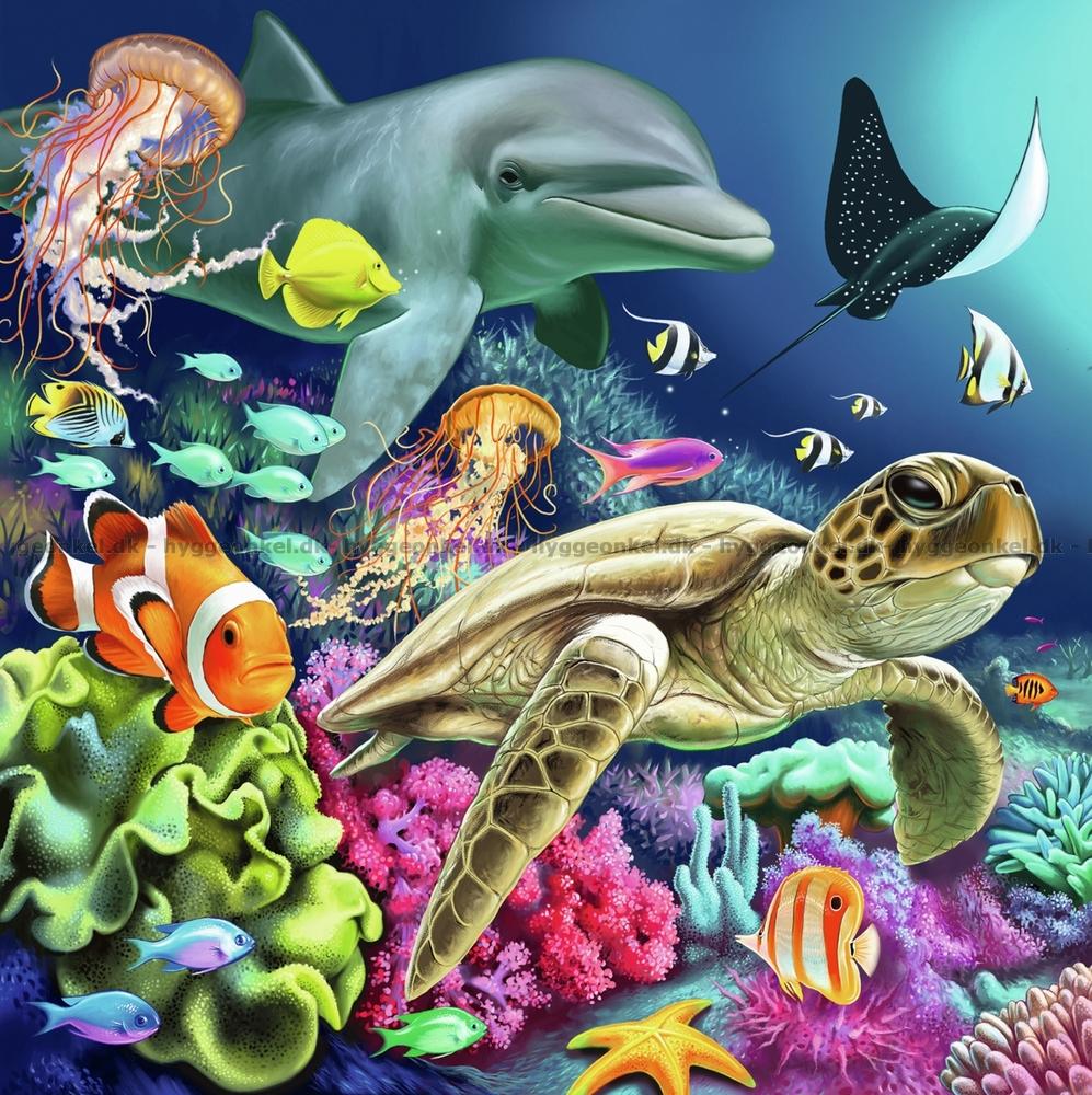 - Djuren leker i vattnet ovanför de vackra korallerna