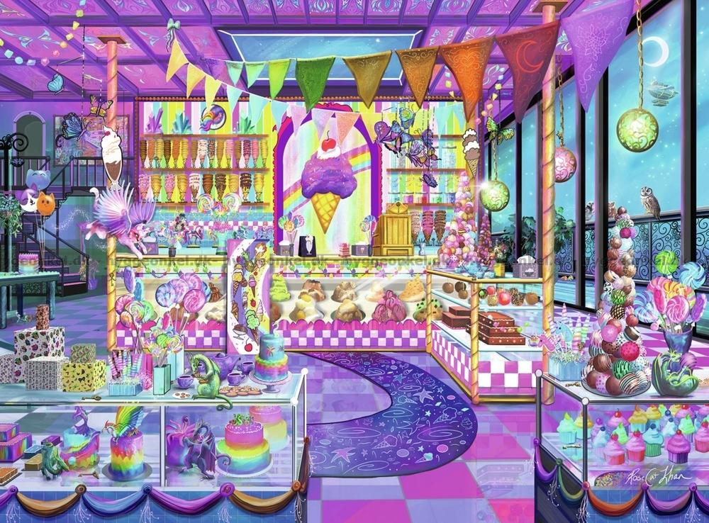 - Den läckra glassen och de vackra kakorna står framme badade i månsken
