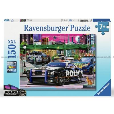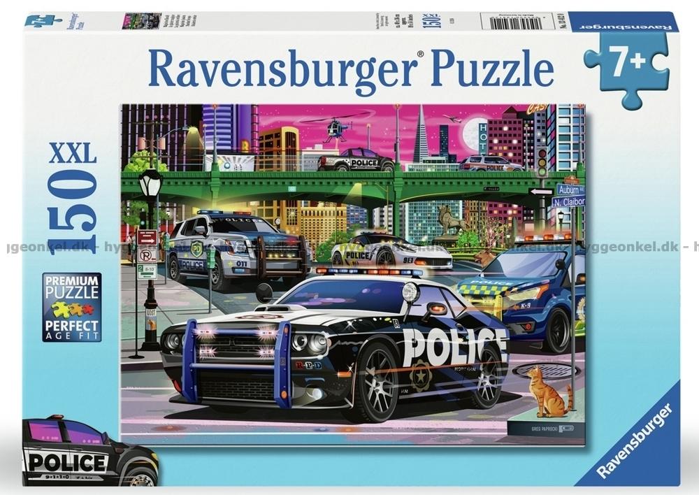 - Polisen är ute och patrullerar i olika fordon i denna storstad