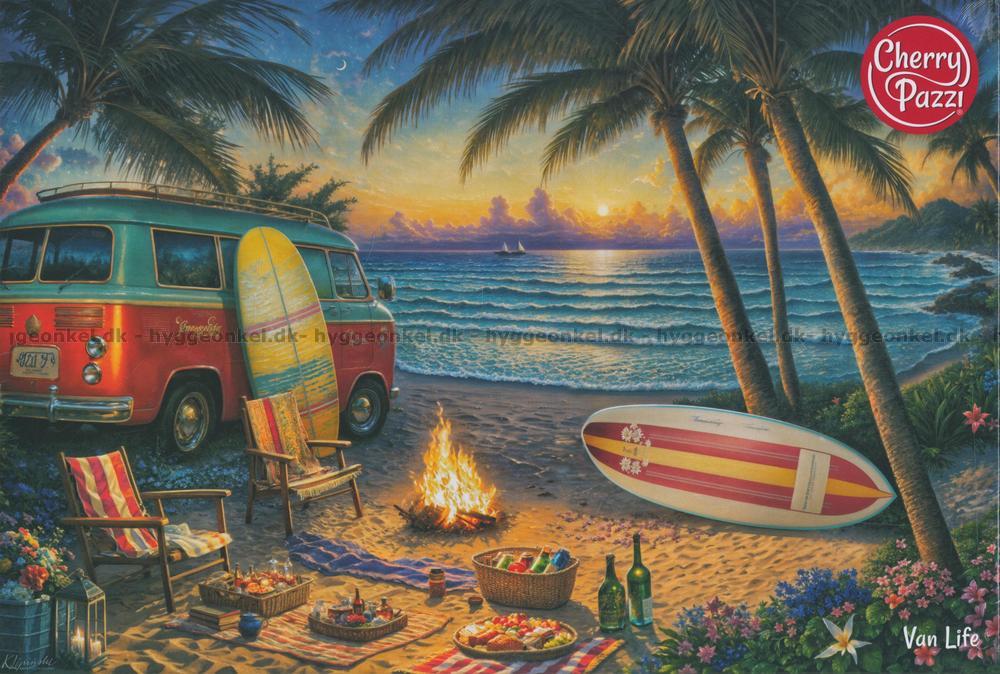 - Efter en härlig dag på vågorna njuts solnedgången vid elden på stranden