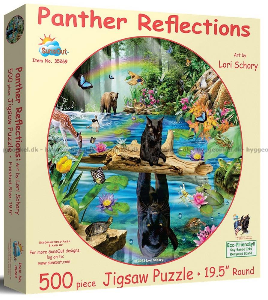 - Spegelbilden av den lilla katten visar en stor, vacker panter