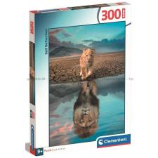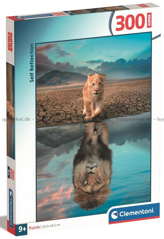- Den lilla lejonungen ser sin framtid i spegelbilden på marken. Kanske är det en blivande djurens konung som tittar tillbaka?