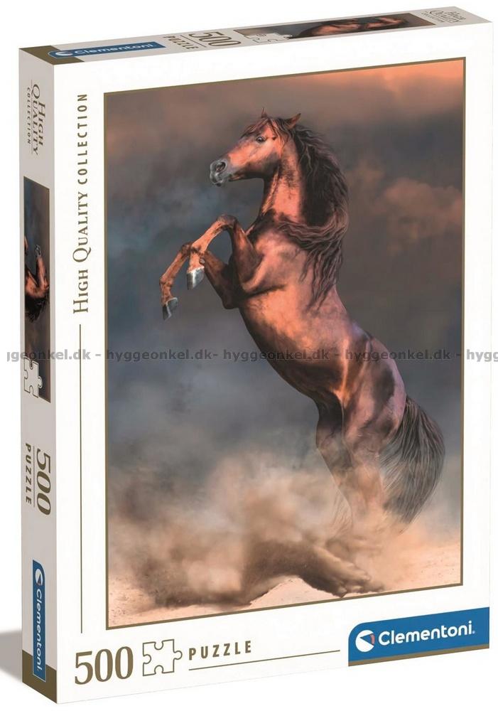 - Den vackra vilda hingsten stegrar sig och sanden yr runt benen på den